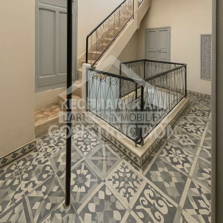 La superficie de 55 m² au sol permet d’imaginer une maison d’hôtes compacte ou un petit riad de charme, optimisé autour d’un patio lumineux.
